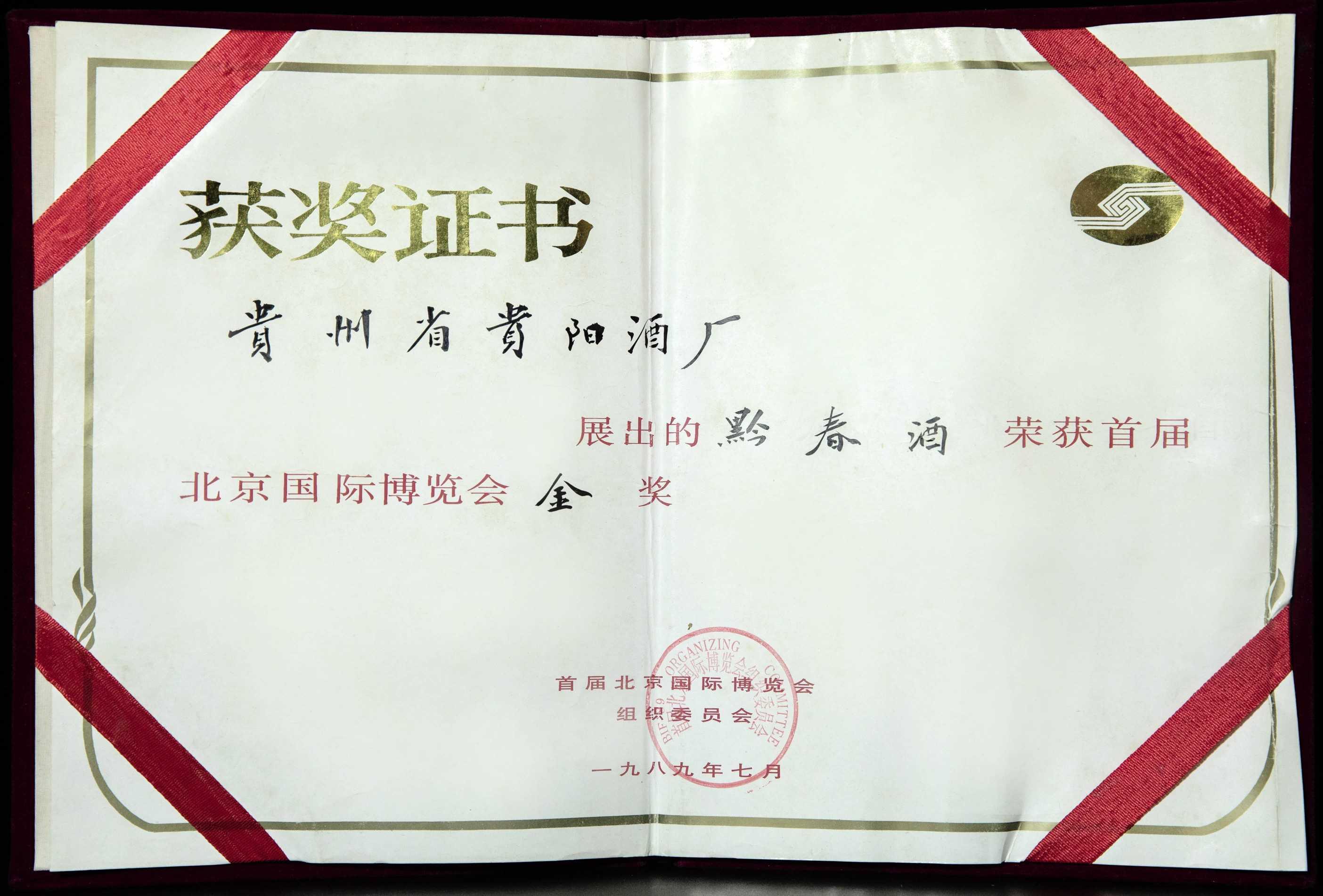 贵阳大曲——1989年首届北京国际博览会“银奖”