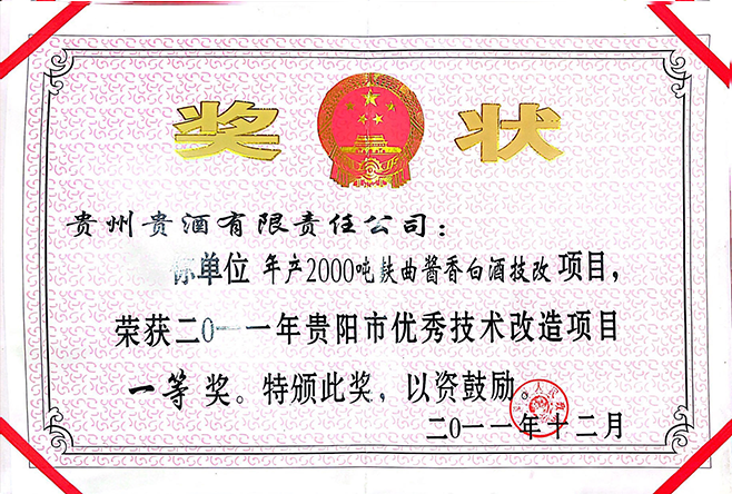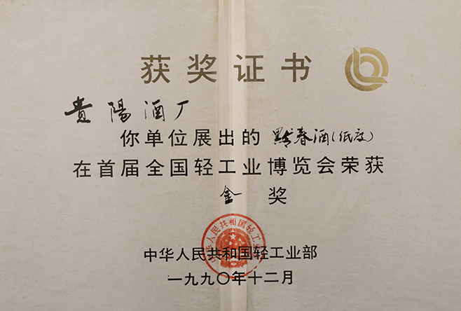 黔春酒——1988年中华人民共和国国家质量奖“优质奖”