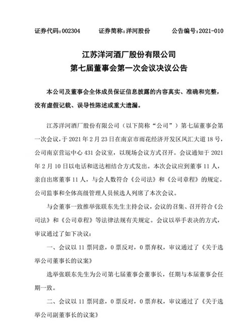 2月23日,公司召开2021年第一次临时股东大会,在股东会之后,公司召开七届一次董事会,选举张联东先生为公司第七届董事会董事长。